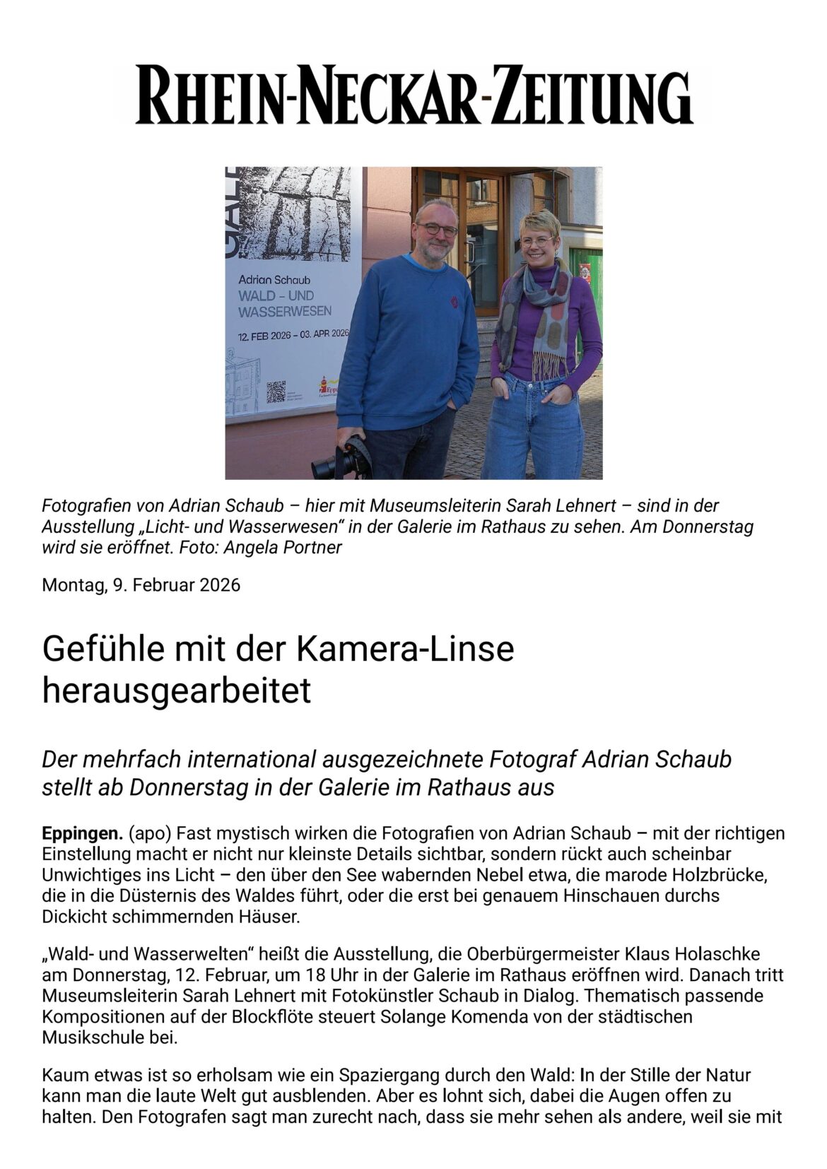 The opening of the exhibition is on February 12, 2026 at 6 p.m. in the gallery in the town hall. Lord Mayor Klaus Holaschke will speak as well as the director of the museum Sarah Lehnert in dialogue with the artist Adrian Schaub.