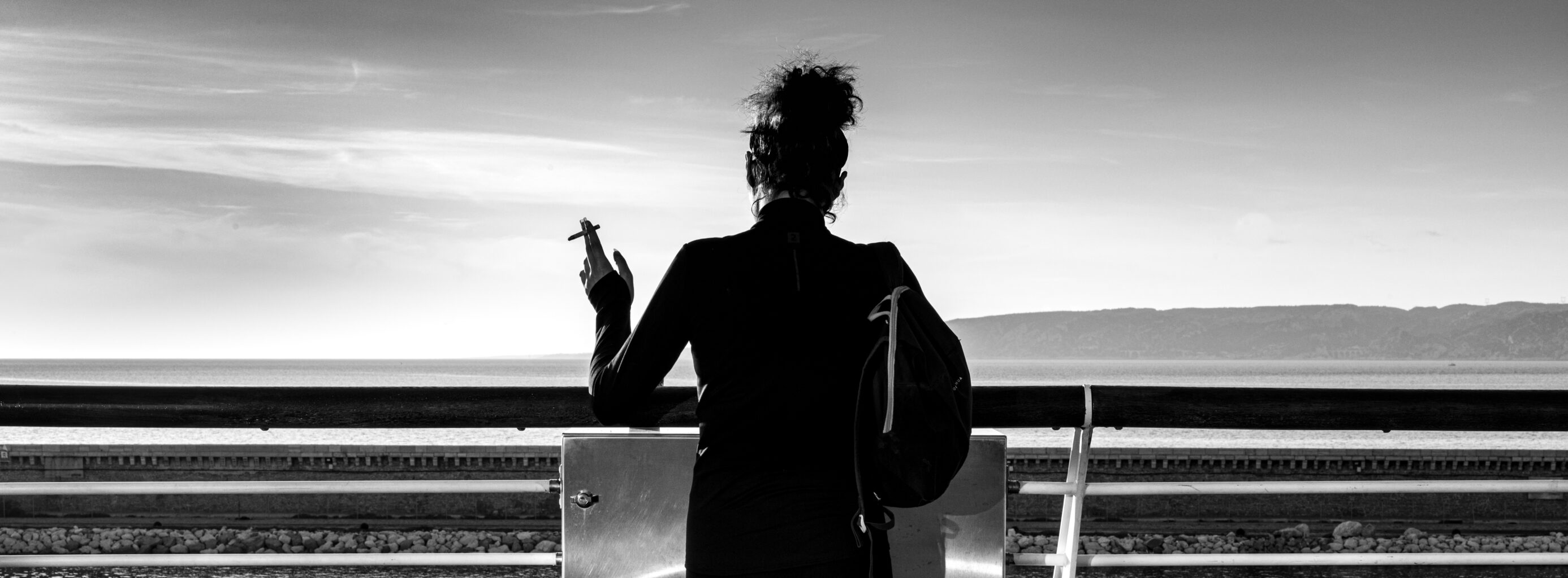 The series shows individuals pursuing activities alone in public spaces. It is typically in the eye of the beholder, influenced by their personal life experiences, whether a particular picture is perceived as an expression of independence or loneliness. The pictures evoke either emotion: the old man staring at the sea could have escaped his small downtown apartment to enjoy the wind and waves, or he could be remembering the days at the beach with his wife, who has died and left him alone.