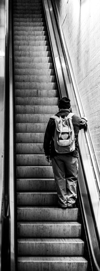 The panorama format emphasizes the theme of Solitude by providing ample (negative) space around the protagonist. Black and white removes the distraction of colour. In the tradition of “hunters and collectors” I enjoy capturing candid moments on the street and in nature. Whilst I appreciate that the creative use of AI gets its well-deserved recognition as art, I don’t use it in my photographs; they contain nothing that wasn’t on the digital or analogue negative.